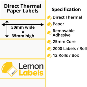 LL1117-22 - 50 x 35mm Direct Thermal Paper Labels With Removable Adhesive on 25mm Cores