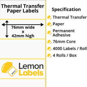 LL1156-20 - 68 x 25mm Direct Thermal Paper Labels With Permanent Adhesive on 25mm Cores